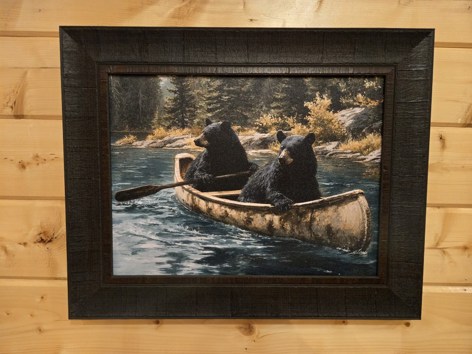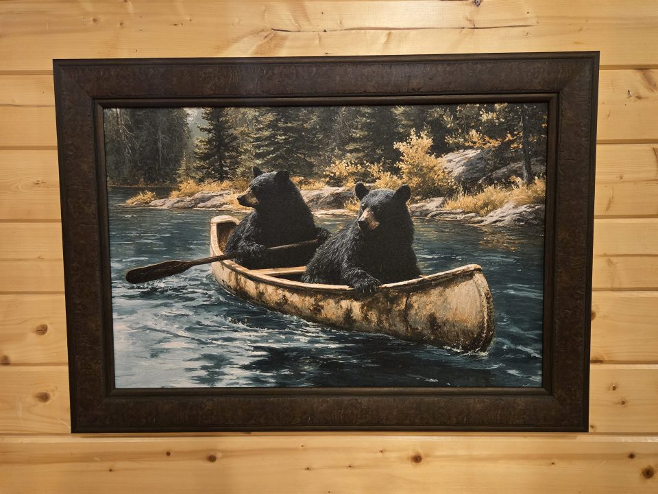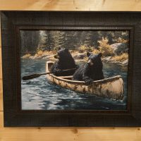 Canoe Paddling by John McFaul. Bears in birch canoe.