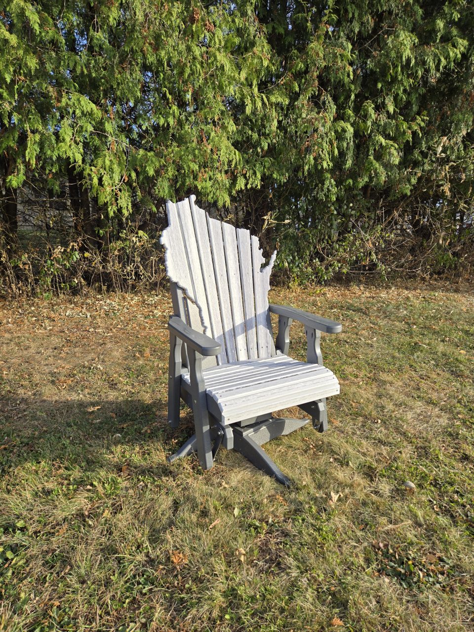The Poly Lumber Wisconsin Swivel Glider will show your Wisconsin pride in style. With its 360-degree swivel and gentle rocking motion, it offers versatile comfort for any outdoor space. Handcrafted by Mennonite artisans in Wisconsin, this glider is made from recycled plastic, providing a durable, eco-friendly alternative to traditional wood furniture that requires no staining or heavy maintenance. Available in multiple colors, you’re sure to find the perfect fit for your outdoor décor.  Our favorite Wisconsin color combinations are green & yellow, navy & yellow, red & black, and for a more subtle look, walnut & weathered wood. Built to last, this furniture comes with a 10-year warranty, ensuring years of enjoyment in a beautifully crafted, weather-resistant piece.