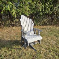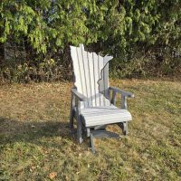 Our Poly Lumber outdoor furniture is Mennonite-made in Wisconsin out of recycled plastic, similar to the product used for patios. We typically stock swivel-glider rockers, end tables, and 4′ benches. A number of additional pieces are also available such as chaise lounge chairs, stationary pieces, and picnic tables. Items with backs can include designs or plain. Our most popular styles are bear, moose, tree, deer and loon. Additional back designs are available. Items not in stock can be ordered and are typically available within 4-12 weeks of ordering. Some items can be shipped, partially assembled, although shipping can be quite expensive due to the weight and size of the products.